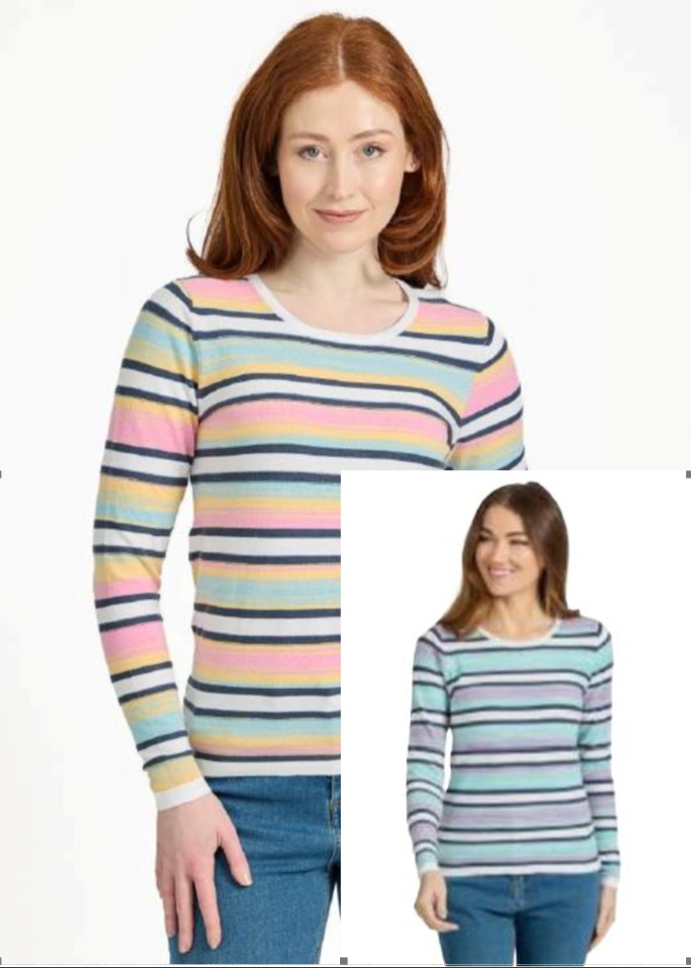 Space dye stripe knit jumper available in blue or lilac.